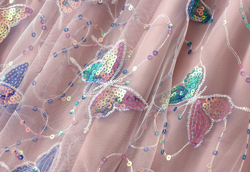 Această fustă cu fluturi și paiete este confecționată din voal de înaltă calitate, cu un draperiu superb, care se mișcă ușor cu fiecare pas, dându-ți un aspect de zână plutind în aer.